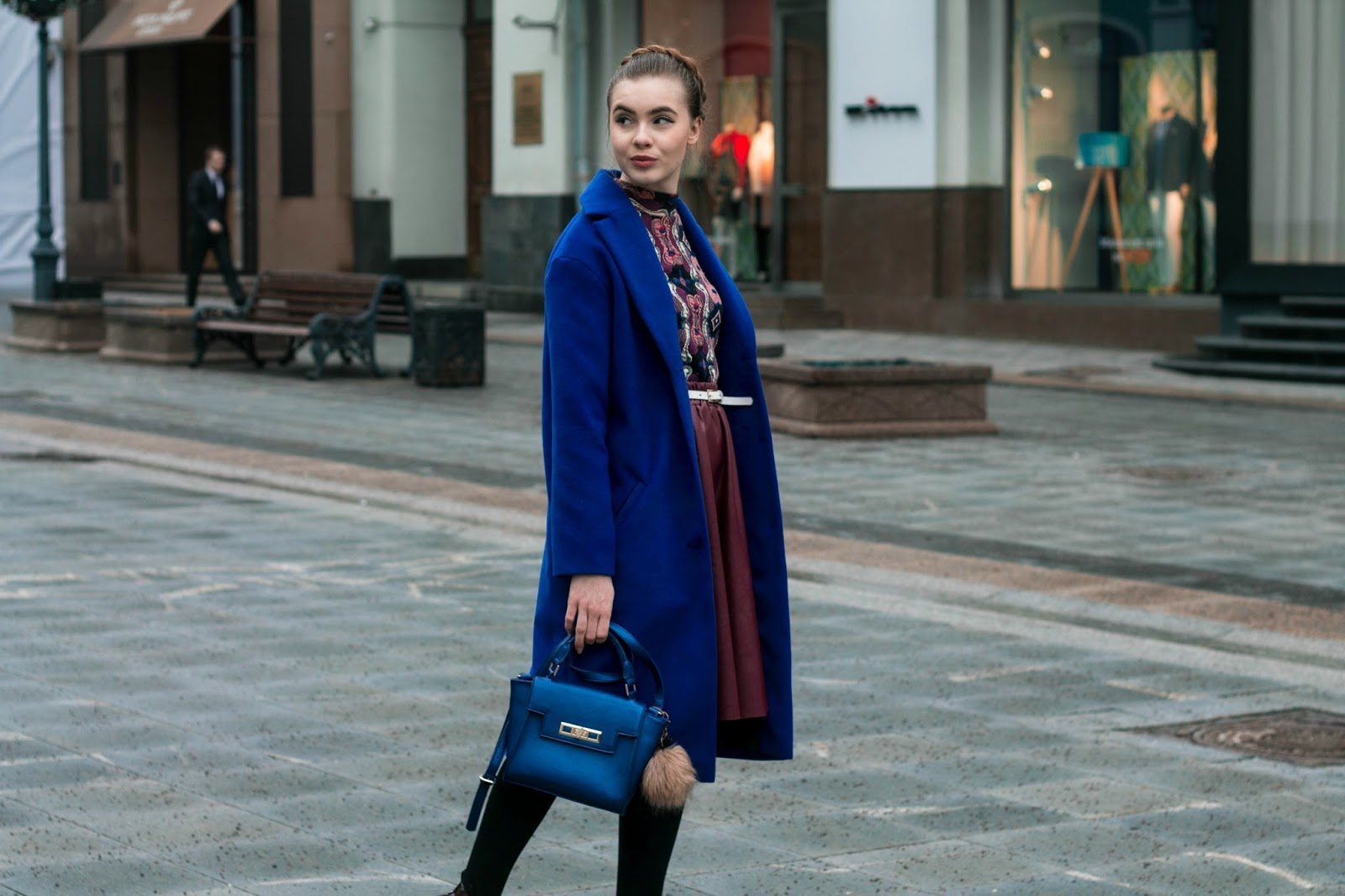 So, the best accent color is to make a coat straight cut deep blue shade, on which any show of early spring will be invisible.